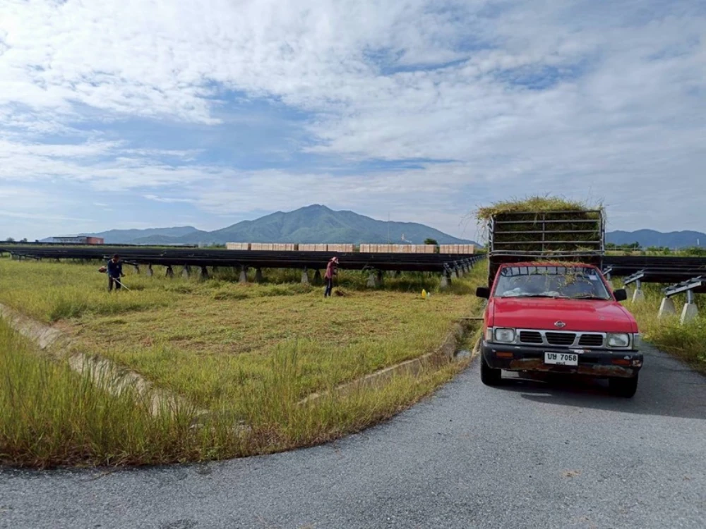 ในปี 2568 กลุ่มบริษัทฯ ได้ดำเนินการ ต่อยอดโครงการ “Weed for Feed” เพื่อยกระดับมาตรฐานการจัดการสิ่งแวดล้อมภายในโรงไฟฟ้าพลังงานแสงอาทิตย์ให้เข้มข้นยิ่งขึ้น โดยมุ่งเน้นการบริหารจัดการวัชพืชและเศษวัสดุภายในพื้นที่โครงการตามหลักการเศรษฐกิจหมุนเวียน (Circular Economy) เปลี่ยนจากภาระด้านการกำจัดทิ้ง (Waste) ให้กลายเป็นทรัพยากรอาหารสัตว์ที่มีคุณค่า (Value) ส่งมอบให้แก่เกษตรกรในพื้นที่จังหวัด ลพบุรี และราชบุรี เพื่อสนับสนุนกลุ่มผู้เลี้ยงปศุสัตว์และเสริมสร้างระบบนิเวศการอยู่ร่วมกันอย่างพึ่งพาอาศัยระหว่างภาคอุตสาหกรรมและชุมชน