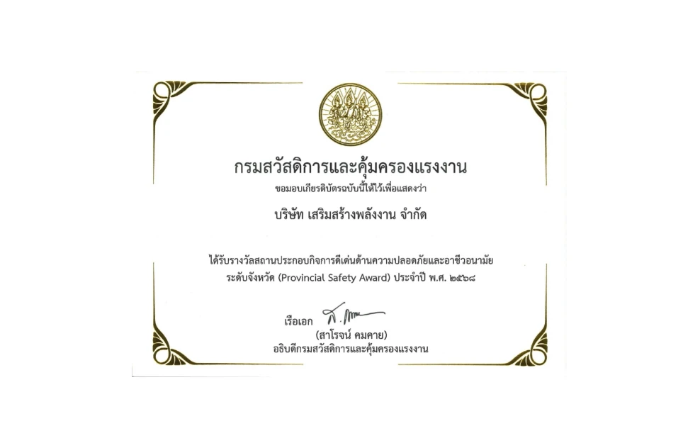 จากสถาบันส่งเสริมความปลอดภัย อาชีวอนามัย สภาพแวดล้อมในการทำงาน (องค์การมหาชน) (สสปท.) กระทรวงแรงงาน